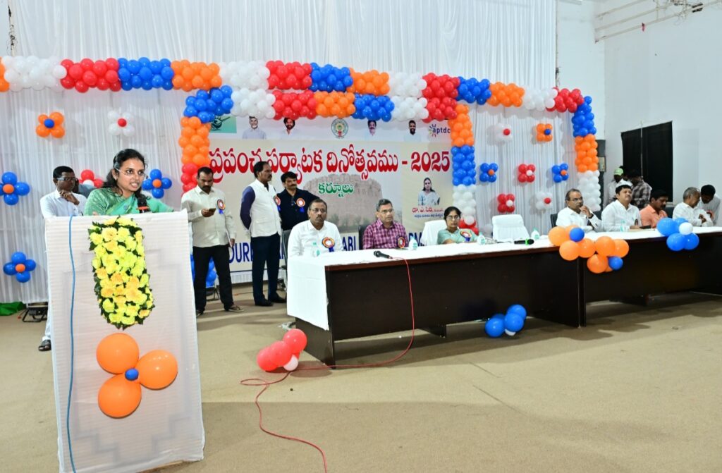 జిల్లాలో రూ. 14 కోట్లతో 5 టూరిజం ప్రాజెక్టులను అభివృద్ధికి ప్రభుత్వానికి ప్రతిపాదనలు పంపించాo .. జిల్లా కలెక్టర్ కర్నూలు జిల్లాలో పర్యాటకాన్ని అభివృద్ధి చేయడానికి అన్ని విధాలా కృషి చేస్తామని జిల్లా కలెక్టర్ డాక్టర్ ఏ.సిరి పేర్కొన్నారు శనివారం ఉదయం కలెక్టరేట్ సునయన ఆడిటోరియంలో పర్యాటక శాఖ ఆధ్వర్యంలో ప్రపంచ పర్యాటకదినోత్సవాన్ని ఘనంగా నిర్వహించారు. ఈ సందర్భంగా జిల్లా కలెక్టర్ డాక్టర్ ఏ. సిరి మాట్లాడుతూ….ఈ ఏడాది ప్రపంచ పర్యాటక దినోత్సవం ధీమ్ స్థిరమైన పర్యాటకం మరియు పరివర్తన అని తెలిపారు. పర్యావరణాన్ని కాపాడుకుంటూ టూరిజంను అభివృద్ధి చేసుకుందాం అని సూచించారు.జిల్లాలో రూ. 14కోట్లతో 5 టూరిజం ప్రాజెక్టులను అభివృద్ధికి ప్రభుత్వానికి ప్రతిపాదనలు సమర్పించారన్నారు. మనకు వారసత్వంగా వచ్చిన పర్యాటక కేంద్రాలను, కొత్తగా ఏర్పాటు చేసుకునే పర్యాటక కేంద్రాలను కూడా ఎల్లపుడు పరిశుభ్రంగా ఉంచుకోవాలని కలెక్టర్ సూచించారు.. మనం ఇంకా ప్లాస్టిక్ బాటిళ్లలో ఉండే నీరు త్రాగి మన ఆరోగ్యాన్ని , పర్యావరణాన్ని పాడు చేసుకుంటున్నామని దాన్ని వెంటనే ఆపాలని, అలాగే ఇళ్లలో, కార్యాలయాల్లో ఏసీ , కరెంటు వాడకాలను తగ్గించి పర్యావరణాన్ని కాపాడేందుకు కృషి చేయాలని కోరారు. సోలార్ పవర్ , విండ్ పవర్ వంటి వాటిపై రాష్ట్ర ప్రభుత్వం ప్రత్యేక దృష్టి పెట్టి కర్బన ఉద్గారాలు లేకుండా పర్యావరణాన్ని కాపాడుతూ, పవర్ అందించే చర్యలు తీసుకుంటోందన్నారు.జిల్లాలో పారిశ్రామికాభివృద్ధి గణనీయంగా పెరుగుతోందని, తద్వారా పర్యాటక రంగం కూడా అభివృద్ధి చెందుతుందని కలెక్టర్ తెలిపారు. జిల్లా టూరిజం మరియు డివిజనల్ అధికారి లక్ష్మీనారాయణ మాట్లాడుతూ …స్పెయిన్ దేశంలో ప్రపంచ పర్యావరణ ఆర్గనైజేషన్ 45 సంవత్సరాల కిందట ఏర్పాటు చేసుకొని ప్రతి సంవత్సరం సెప్టెంబర్ 27న ప్రపంచ పర్యాటక దినోత్సవం జరుపుకోవడం జరుగుతుందని తెలిపారు.ప్రతి సంవత్సరం ఒక థీమ్ ప్రకారం జరుపుకోవడం జరుగుతుందని ఈ సంవత్సరం టూరిజం మరియు సస్టైనబుల్ ట్రాన్స్ఫర్మేషన్. దీని ప్రకారం పర్యావరణాన్ని కాపాడుకుంటూ పర్యాటకాన్ని అభివృద్ధి చేసుకుంటూ సుస్థిరమైన మార్గంలో పయనించడం.ఉమ్మడి జిల్లాలో ప్రకృతి పరంగా పర్యాటక ప్రదేశాలు, సాంస్కృతికపరంగా పర్యాటక ప్రదేశాలు ఉన్నవని వాటిని పర్యావరణాన్ని కాపాడుకుంటూ పర్యాటకాన్ని అభివృద్ధి చేస్తున్నామని తద్వారా యువతకు ఉపాధి కలుగుతుందని జిల్లా అభివృద్ధి చెందుతుందని , కర్నూలు జిల్లాలో శిల్పారామంను ఏర్పాటు చేస్తున్నామని , స్థానికంగా హరిత హోటల్ ను పర్యాటకులను ఆకర్షించే విధంగా మూడు కోట్ల రూపాయలతో అభివృద్ధి చేశామని తెలియజేశారు. ఈ కార్యక్రమంలో చిన్నారులు చారిత్రక వివరాలు తెలుపుతూ చ