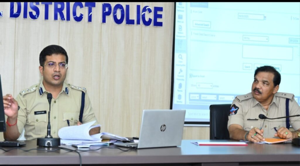 సాంకేతిక పరిజ్ఞానంతోనే నేరాల నియంత్రణ … ఆధునిక సాంకేతికతతో నేరస్ధుల పై నిఘా ఉంచాలి. … పోలీసు అధికారులతో సమీక్ష సమావేశం నిర్వహించిన … జిల్లా ఎస్పీ. పోలీసులు ఆధునిక సాంకేతిక పరిజ్ఞానాన్ని ఉపయోగించి , నేరాల నియంత్రణతో పాటు నేరస్ధులను పట్టుకోవాలని జిల్లా ఎస్పీ విక్రాంత్ పాటిల్ ఐపియస్ అన్నారు. ఈ సంధర్బంగా గురువారం జిల్లా పోలీసు కార్యాలయంలోని వ్యాస్ ఆడిటోరియంలో జిల్లాలోని డిఎస్పీలు, సిఐలు, ఎస్సైల తో కర్నూలు జిల్లా ఎస్పీ విక్రాంత్ పాటిల్ ఐపియస్ నేర సమీక్షా సమావేశం నిర్వహించారు. ఈ నేర సమీక్షా సమావేశంలో వర్చువల్ విధానంలో పాల్గొన్న సిఐడి ఐజి వీనిత్ బ్రిజ్ లాల్ తో జిల్లా ఎస్పీ మాట్లాడారు. అనంతరం సిఐడి ఐజి , సిసిటిఎన్ఎస్ గురించి జిల్లా ఎస్పీ తో మాట్లాడారు… ఈ సంధర్బంగా జిల్లా ఎస్పీ పోలీసు అధికారులతో మాట్లాడo జరిగింది. కర్నూలు , పత్తికొండ , ఆదోని , ఎమ్మిగనూరు సబ్ డివిజన్ లో దీర్ఘకాలంగా ఉన్న పెండింగ్ కేసుల గురించి జిల్లా ఎస్పీ సమీక్షించి ఆరా తీశారు. పోలీసుస్టేషన్ల వారీగా కేసుల పెండింగ్ కు గల కారణాలను అడిగి తెలుసుకొని పలు సలహాలు, సూచనలు చేశారు. కేసు నమోదు నుంచి అభియోగ పత్రాలు దాఖలు వరకు ప్రతి అంశాన్నీ సీసీటీఎన్ఎస్ అప్లికేషన్లో నమోదు చేయాలని, పోలీసు స్టేషన్లలో నమోదయ్యే కేసుల వివరాలను ప్రతి అంశాన్ని క్షుణ్ణంగా సిసిటిఎన్ఎస్లో అన్ని వివరాలు నమోదు చేయడం వల్ల కేసులు, వ్యక్తుల పూర్తి సమాచారం తెలుస్తుందని అది అందరికీ ఉపయోగపడేలా దోహదం చేస్తుందన్నారు. ప్రతి పోలీస్ స్టేషన్ సిడి పైళ్ళను ఆయా పోలీసు అధికారులు సిసిటిఎన్ఎస్ లో నమోదు చేసారో లేదో అని ఆరా తీశారు. సీసీటీఎన్ఎస్లో ముఖ్యంగా గ్రేవ్ కేసులు, నాన్ గ్రేవ్ కేసులలో పార్ట్ 1, పార్ట్ 2 సీడీలు అప్డేట్గా ఉండేలా చూసుకోవాలన్నారు. మర్డర్ కేసుల్లో, 174 సిఆర్పిసి కేసుల్లో త్వరితగతిన పురోగతి పొందేలా చూసుకుంటూ అభియోగ పత్రాలను వీలైనంత తొందరగా కోర్టులో ధాఖలు చేయాలని, డిఎస్పీ స్ధాయి అధికారులు దర్యాప్తు చేస్తున్నపుడు తగు జాగ్రత్తలు తీసుకోవాలన్నారు. క్రైమ్ రికార్డు సిడి ఫైల్స్ తయారు చేయడంలో , సిసి టిఎన్ ఎస్ లో వివరాలు నమోదు అప్ డేట్ చేయడంలో ఎలాంటి లోపాలు లేకుండా చూడాలని కోరారు. అనంతరం పోలీసుస్టేషన్ లలో పని చేసే సిసిటిఎన్ ఎస్ పోలీసు సిబ్బందితో మాట్లాడుతూ.. గ్రేవ్ కేసులు, యు ఐ కేసులు, మర్డర్ , సైబర్ నేరాల కేసులు, పోక్సో కేసులు , మిస్సింగ్ కేసులు, ఎస్సీ ఎస్టీ కేసులు, డ్రంకెన్ డ్రైవ్, ఒపెన్ డ్రింకింగ్ కేసుల గురించి అడిగి తెలుసుకున్నారు. రోడ్డు ప్రమాదాల నియంత్రణకు చర్యలు మరియు డ్రంకెన్ డ్రైవ్, ఓపెన్ డ్రింకింగ్ ఆయా పోలీసుస్టేషన్ల పరిధులలో తనిఖీలు నిర్వహించాలన్నారు. సైబర్ నేరాల గురించి ప్