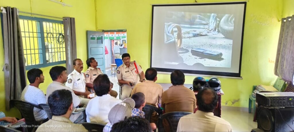 కర్నూలు రేంజ్ డిఐజి డాక్టర్ కోయ ప్రవీణ్జిల్లా ఎస్పీ విక్రాంత్ పాటిల్. V POWER NEWS : ప్రతి శనివారం రోడ్డు భద్రతపై ప్రజలకు అవగాహన కార్యక్రమాలు నిర్వహించాలని పోలీసు అధికారులకు కర్నూలు రేంజ్ డిఐజి డాక్టర్ కోయ ప్రవీణ్,జిల్లా ఎస్పీ విక్రాంత్ పాటిల్ లు సంయుక్తంగా ఆదేశాలు జారీ చేశారు.వాహనదారులు రహదారి భద్రత నియమాలు పాటిస్తే రోడ్డు ప్రమాదాల నివారణ సాధ్యమవుతుందని తెలిపారు.జిల్లా వ్యాప్తంగా ఉన్న ఆయా పోలీసుస్టేషన్ పరిధులలో జిల్లా పోలీసు అధికారులు ప్రజలకు రోడ్డు భద్రత,ట్రాఫిక్ నిబంధనలపై సమావేశాలు నిర్వహించి, అవగాహన కల్పించాలన్నారు. మైనర్లు వాహనాలు నడపకుండా తల్లిదండ్రులు జాగ్రత్తలు తీసుకునేవిధంగా చర్యలు చేపట్టాలన్నారు.బైక్ లు నడిపే వారు ఖచ్చితంగా హెల్మెట్లు ధరించే విధంగా,ఓవర్ స్పీడ్,ఓవర్ లోడ్ తో వాహనాలు వెళ్ళకుండా,డ్రంకెన్ డ్రైవ్ వంటి తదితర రోడ్డు భద్రత ప్రాముఖ్యతలపై ప్రజలకు అవగాహన కల్పించాలన్నారు.(మార్చి 30 నుండి ఏప్రిల్ 4 వరకు)గత వారంలో కర్నూలు జిల్లా పోలీసులు తీసుకున్న చర్యలను జిల్లా ఎస్పీ తెలిపారు. రోడ్డు ప్రమాదాల కేసులు 12 నమోదు కాగా,5 మంది మృతి చెందారని,12 మంది గాయపడినట్లు తెలిపారు.మద్యం తాగి వాహనాలు నడిపే వారిపై స్పెషల్ డ్రైవ్ నిర్వహించి 136 డ్రంకెన్ డ్రైవ్ కేసులు నమోదు చేసి,కోర్టుకి హజరు పరిచామన్నారు.