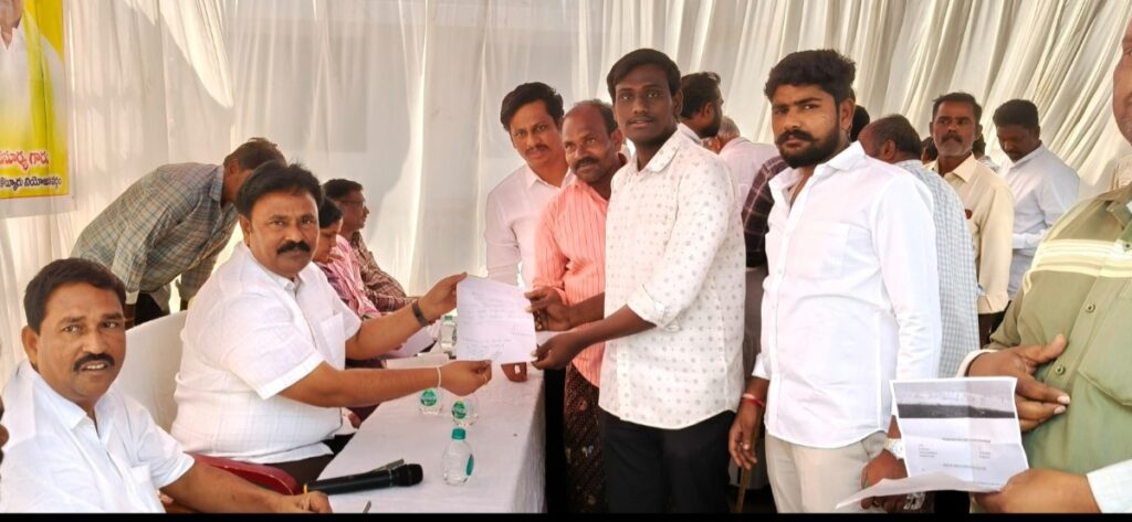 గ్రీవెన్సెస్ కార్యక్రమంలో …. నందికొట్కూరు శాసనసభ్యుడు గిత్త జయసూర్య V POWER NEWS : నంద్యాల జిల్లా, నందికొట్కూరు మున్సిపల్ కార్యాలయం నందు ఏర్పాటు చేసిన గ్రీవెన్సెస్ ప్రజాపిర్యాదుల స్వీకరణ కార్యక్రమంలో పాల్గొని ఎమ్మెల్యే మాట్లాడుతూ రాష్ట్రంలో చంద్రబాబు నాయుడు ముఖ్యమంత్రిగా 9 నెలలు బాధ్యతలు చేపట్టిన తర్వాత పరిపాలనలో విప్లవాత్మక మార్పులకు శ్రీకారం చుట్టారని, సామాన్యుడికి కూడా పరిపాలనను అందుబాటులోకి తీసుకొచ్చినట్లు నందికొట్కూరు ఎమ్మెల్యే గిత్త జయసూర్య గారు అన్నారు. ప్రజల నుంచి, అర్జీలు స్వీకరించారు. అర్జీలను త్వరగా పరిష్కరించేందుకు కృషి చేయాలని అధికారులకు సూచించారు. కూటమి ప్రభుత్వం అధికారంలోకి వచ్చిన వెంటనే రాష్ట్ర ముఖ్యమంత్రి నారా చంద్రబాబు నాయుడు ఆదేశాలకు ప్రతి సోమవారం ప్రభుత్వ కార్యాలయాల్లో అధికారులు, మూడవ శనివారం రాష్ట్ర వ్యాప్తంగా మంత్రులు ,ఎమ్మెల్యేలు ప్రజా సమస్యల పరిష్కార వేదికలో పాల్గొనాలని సూచించారని , ప్రజల నుండి వచ్చిన దరఖాస్తులను స్వీకరించి వాటిని పరిష్కరించే దిశగా అడుగులు ముందుకు వేయాలని ముఖ్యమంత్రి సూచించారని ఎమ్మెల్యే గిత్త జయసూర్య పేర్కొన్నారు. ఈ కార్యక్రమంలో అధికారులు, ప్రజాప్రతినిధులు, నాయకులు పాల్గొనడం జరిగినది.