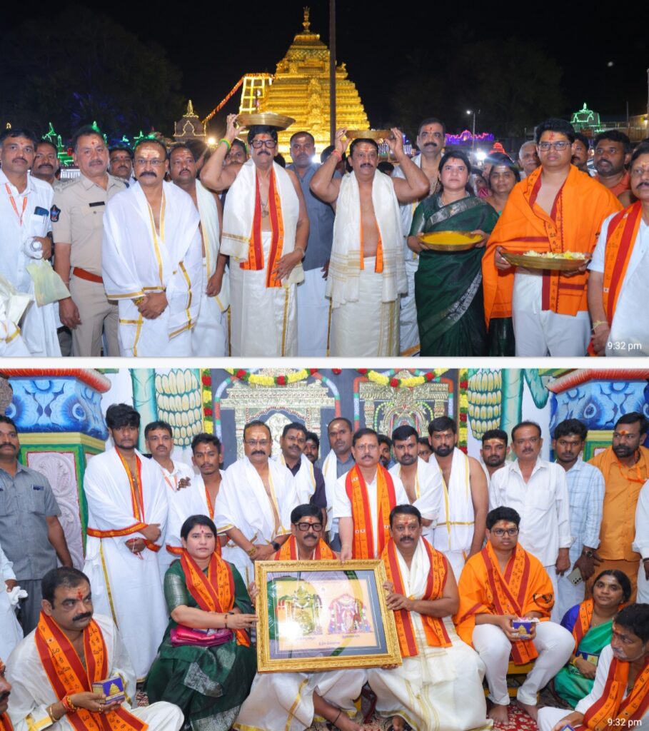 శ్రీశైల క్షేత్రంలో అత్యంత వైభవంగా నిర్వహిస్తున్న మహా శివరాత్రి బ్రహ్మోత్సవాల సందర్భంగా, రాష్ట్ర దేవాదాయ శాఖ మంత్రి ఆనం రామనారాయణ రెడ్డి శ్రీశైలం శాసనసభ్యులు బుడ్డా రాజశేఖర్ రెడ్డి తో కలిసి ప్రభుత్వం తరఫున శ్రీ భ్రమరాంబ మల్లికార్జున స్వామి వారికి పట్టువస్త్రాలు సమర్పించారు. ఈ పవిత్ర సందర్భంలో మంత్రి , ఎమ్మెల్యే ప్రత్యేక పూజలు నిర్వహించి, భక్తుల మంగళకాంక్షల మధ్య స్వామివారికి పట్టువస్త్రాలు సమర్పించారు.