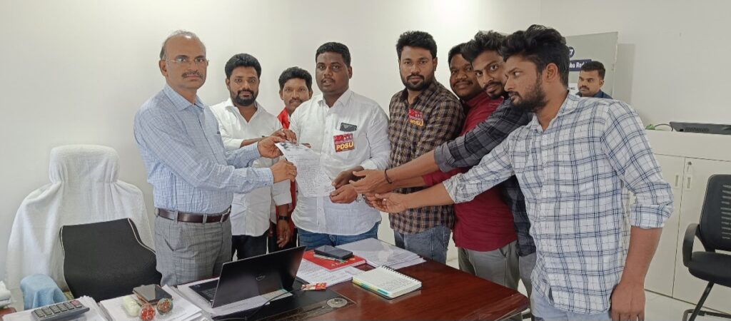 డిమాండ్ చేసినా పి.డి.ఎస్.యు రాష్ట్ర అధ్యక్షులు ఎస్.ఎండి రఫీ, రాష్ట్ర ప్రధాన కార్యదర్శి ఎస్.కిరణ్ కుమార్