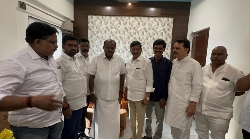 V POWER NEWS : కర్నూలు జిల్లా మంత్రాలయంలో కేంద్ర భారీ పరిaశ్రమల శాఖ మంత్రి కుమార స్వామి, కేంద్ర రైల్వే శాఖ సహాయ మంత్రి సోమన్నలను కర్నూలు ఎం.పి బస్తిపాటి నాగరాజు మర్యాద పూర్వకంగా కలిశారు.. రాఘవేంద్ర స్వామి గురు వైభోత్సవ వేడుకల్లో పాల్గొనేందుకు వచ్చిన కేంద్ర మంత్రులను పధ్బనాబం అతిథి గృహంలో విరి విరిగా కలిసిన ఎం.పి వారికి, శాలువాలతో సత్కరించి పూల మొక్కలను అందజేశారు.