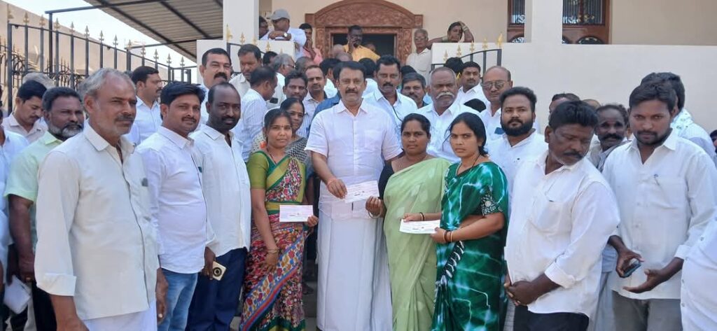 V POWER NEWS : శ్రీశైలం నియోజకవర్గంలోని వేల్పనూరు స్వగ్రామం నందు మంగళవారం నియోజకవర్గానికి చెందిన 58 మంది వివిధ అనారోగ్య కారణాలతో చికిత్స పొంది ముఖ్యమంత్రి సహాయ నిధి కోసం దరఖాస్తు చేసుకోగా మంజూరైన రూ.50 లక్షల విలువైన చెక్కులు, అలాగే CM AJY పథకం క్రింద ముగ్గురు లబ్ధిదారులకు మంజూరైన రూ. 3లక్షల విలువగల చెక్కులను లబ్ధిదారులకు పంపిణీ చేశారు. ఈసందర్భంగా ఎమ్మెల్యే బుడ్డా రాజశేఖర రెడ్డి మాట్లాడుతూ వైద్యం పరంగా ఆపదలో ఉన్నవారికి సకాలంలో చికిత్స కోసం అందిస్తున్న నిధులు సద్వినియోగం చేసుకోవాలన్నారు. పార్టీలకు అతీతంగా కేవలం అర్హతే ఆధారంగా సీఎం రిలీఫ్ ఫండ్ నిధులు అందిస్తున్నారన్నారు. ఈసందర్భంగా చెక్కులు అందుకున్న వారు మాట్లాడుతూ వైద్య సహాయం కోసం ముఖ్యమంత్రి నారా చంద్రబాబు నాయుడు అందించిన నిధులు తమకు అందేలా కృషి చేసిన ఎమ్మెల్యే బుడ్డా రాజశేఖర రెడ్డి గారికి కృతజ్ఞతలు తెలిపారు.