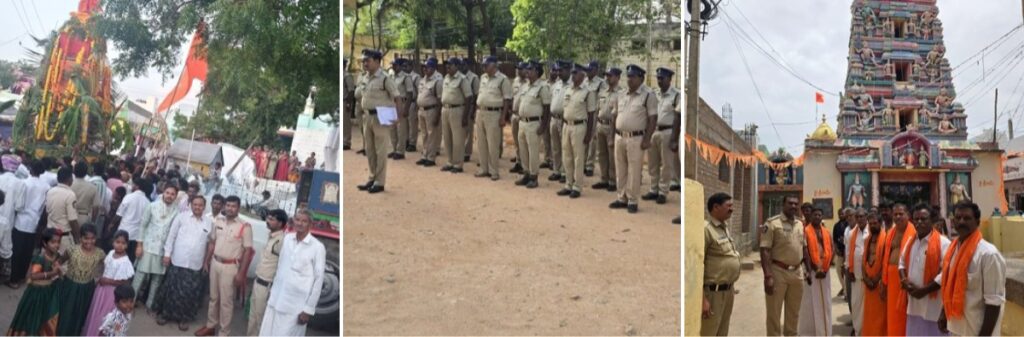 గురువారం శ్రీ హనుమాన్ జయంతి నేపథ్యంలో కర్నూలు జిల్లా ఎస్పీ విక్రాంత్ పాటిల్ ఐపియస్ గారి ఆదేశాలతో ఎలాంటి అవాంఛనీయ ఘటనలకు తావు లేకుండా పోలీసులు గట్టి బందోబస్తు నిర్వహిస్తున్నారు. హనుమాన్ జయంతి వేడుకలు, శోభయాత్ర లు నిర్వహించే ప్రదేశాలలో ప్రశాంత వాతావరణం ఉండే విధంగా చర్యలు చేపట్టారు.