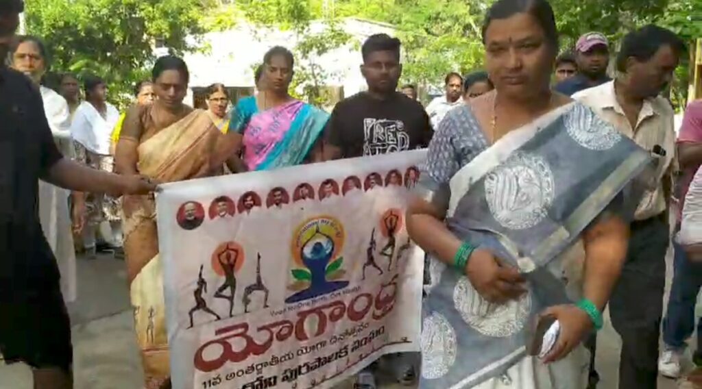 V POWER NEWS : కర్నూలు జిల్లా ఆదోని పట్టణంలోని స్థానిక మున్సిపల్ ఆఫీసు ప్రాంగణం నుండి పాత బ్రిడ్జి వరaకు ర్యాలీగా వెళ్లి ప్రజలకు అవగాహన కల్పిస్తూ 11వ అంతర్జాతీయ యోగా దినోత్సవం సందర్భంగా ఒకే భూమి, ఒకే ఆరోగ్యం కోసం యోగాంధ్ర 2025 సందర్భంగా మున్సిపల్ చైర్మన్ సిహెచ్ లోకేశ్వరి, మున్సిపల్ కమిషనర్ ఎం. కృష్ణ, మున్సిపల్ ఇంజనీర్ ఇంతియాజ్ అలీ, ఆదేశానుసారంగా మున్సిపల్ అసిస్టెంట్ కమిషనర్ అనుపమ, మున్సిపల్ డిఈ రామ్మూర్తి, డిఈ గోపీనాథ్, డిఈ వెంకట చలపతి, ఏఈ జనార్ధన్ ఆధ్వర్యంలో 11వ అంతర్జాతీయ యోగా దినోత్సవం సందర్భంగా ఒకే భూమి, ఒకే ఆరోగ్యం కోసం యోగాంధ్ర 2025 పై ప్రజల భాగస్వామ్యం అవ్వాలని అవగాహన కల్పించారు. ఈ కార్యక్రమానికి హమ్యూనిటీ సచివాలయం సెక్రెటరీ పావని, సచివాలయ సిబ్బంది, హెల్త్ డిపార్ట్మెంట్ సిబ్బంది, మునిసిపల్ రెవెన్యూ సిబ్బంది, తదితరులు పాల్గొన్నారు.