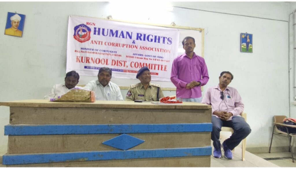 ఈ సందర్బంగా స్పెషల్ పోలీస్ డిఎస్పీ మహబూబ్ బాషా మాట్లాడుతూ సమాజంలో జరుగుతున్న లోపాల పట్ల ప్రశ్నించే స్థాయికి యువత అవగాహన పెంచాకోవాల్సిన అవసరం ఉందన్నారు. ప్రశ్నించినపుడే సమస్యకు న్యాయం జరుగుతుంది అన్నారు.ప్రస్తుతం సమాజంలో ప్రశ్నించే గొంతు లేక ప్రజలు వివిధ రకాలుగా నష్టపోతున్నా రని, హింసించబడుతున్నారని ఆవేదన చెందారు.RGN హ్యూమన్ రైట్స్ యాంటీ కరప్షన్ అసోసియేషన్ వారు ప్రజల తరపున నియమ నిబంధనలతో ప్రశ్నించే గొంతుగా మారి వారికి అన్ని రకాలుగా సహకారం అందిస్తూ సమాజ మార్పుకు కృషి చేయాలని సూచించారు.నేడు RGN హ్యూమన్ రైట్స్ & యాంటీ కరప్షన్ అసోసియేషన్ జిల్లా కమిటి బృందం తీసుకునే కార్యక్రమాలకు ఎల్లవేళలా తమవంతు సహకారం అందిస్తామని చెప్పారు.ప్రజా సమస్యల పట్ల నిస్పక్షపాతంగా, నిస్వార్ధంగా పని చేసినపుడే సమాజ సేవకులుగా చిరంజీవులుగా సమాజంలో మన్ననలు పొందుతారని పేర్కొన్నారు. ఎపి ఇంచార్జి విజయ్ కుమార్ మాట్లాడుతూ RGN హ్యూమన్ రైట్స్ & యాంటీ కరప్షన్ అసోసియేషన్ జిల్లా కమిటి నిర్ణయాలకు రాష్ట్ర కమిటీ అండగా నిలుస్తుందన్నారు. నిబద్దతతో ప్రతి ఒక్కరు RGN హ్యూమన్ రైట్స్ & యాంటీ కరప్షన్ అసోసియేషన్ అభివృద్ధికి పాటుపడాలని తెలిపారు. యునైటెడ్ జర్నలిస్ట్ ఫోరం జిల్లా నాయకులు వి.విజయ్ కుమార్, జిల్లా ఆర్గనైజింగ్ సెక్రటరీ సత్యనారాయణ,ప్రధాన కార్యదర్శి బి. ఆజాద్ లు మాట్లాడుతూ RGN హ్యూమన్ రైట్స్ & యాంటీ కరప్షన్ అసోసియేషన్ సంస్థ నియమ నిబంధనలతో ప్రతి ఒక్కరిని సమానంగా చూస్తూ,వారి సమస్యల పరిష్కారం కోసం,ప్రజలను చైతన్యం చేయడం కోసం ఆయా ప్రాంతాల్లో అవగాహన కార్యక్రమాలను ఏర్పాటు చేయాలనీ చెప్పారు.  ప్రతి ఒక్కరూ అసోసియేషన్ సంస్థ నిబంధనల మేరకు ఈకార్యక్రమాలు కొనసాగించాలని కోరారు. అనంతరం డిఎస్పీ మహబూబ్ బాషా చేతుల మీదుగా కర్నూలు జిల్లా నూతన కమిటీ సభ్యులకు గుర్తింపు కార్డులను పంపిణీ చేశారు.