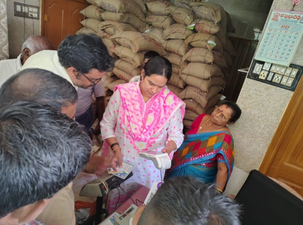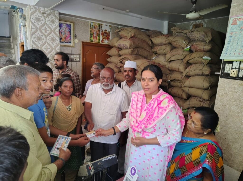 V POWER NEWS  : కర్నూలు జిల్లాలో అక్టోబర్ నెల 15 వ తేదీ వరకు రేషన్ షాప్ డీలర్ల ద్వారా స్మార్ట్ రేషన్ కార్డులను పొందవచ్చని,16 వ తేదీ తర్వాత సచివాలయ ఉద్యోగుల ద్వారా స్మార్ట్ రేషన్ కార్డుల ద్వారా పంపిణీ చేయబడతాయని జాయింట్ కలెక్టర్ డా.బి.నవ్య తెలిపారు. బుధవారం నాడు నగరంలోని బుధవారపేట లో 1382073, 1382075 ఎఫ్.పి.షాపులను జాయింట్ కలెక్టర్ తనిఖీ చేసి రేషన్ పంపిణీ ని పరిశీలించారు. అనంతరం వినియోగదారులకు స్మార్ట్ రేషన్ కార్డులను పంపిణీ చేశారు.ఈ సందర్భంగా జాయింట్ కలెక్టర్ మాట్లాడుతూ ఎఫ్.పి షాపుల ద్వారా వినియోగదారులకు రేషన్ సరుకులను సక్రమంగా పంపిణీ చేయాలని డీలర్లకు సూచించారు. స్మార్ట్ రేషన్ కార్డులను ఉచితంగా పంపిణీ చేయాలని, ఎవరైనా డీలర్లు డబ్బులు అడిగితే కఠిన చర్యలు తప్పవని జాయింట్ కలెక్టర్ హెచ్చరించారు.