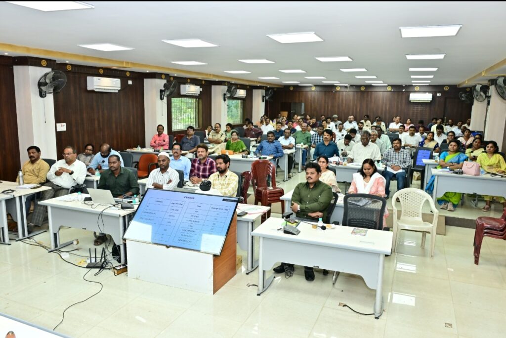V POWER NEWS : కర్నూలు, కలెక్టరేట్ కాన్ఫరెన్స్ హాల్ లో 3 రోజుల పాటు 91 శాఖల అధికారులతో ఇంటరాక్టివ్ సెషన్ కార్యక్రమాన్ని నిర్వహించడంలో భాగంగా శని వారం మూడవ రోజు రెవెన్యూ, విద్య, వైద్య ఆరోగ్యం, కమర్షియల్ ట్యాక్స్, ఐసిడిఎస్ తదితర శాఖల అధికారులతో జిల్లా కలెక్టర్ ఇంటరాక్టివ్ సెషన్ కార్యక్రమం నిర్వహించారు.వివిధ శాఖల జిల్లా అధికారులు పవర్ పాయింట్ ప్రజంటేషన్ ద్వారా తమ శాఖ కార్యక్రమాలను గురించి వివరించారు. ఈ సందర్భంగా వివిధ శాఖల అధికారులతో జిల్లా కలెక్టర్ మాట్లాడుతూ క్షేత్ర స్థాయిలో ప్రజలకు అందించాల్సిన సేవలన్నీ సక్రమంగా అందించాలన్నారు.. అలాగే ప్రజల సమస్యలను కూడా త్వరితగతిన పరిష్కరించాలన్నారు. ఫిర్యాదులు వచ్చిన వెంటనే స్పందించాలన్నారు..ప్రజలకు అందుబాటులో ఉండాలని, వారి సమస్యలను ఓపిగ్గా వినాలని సూచించారు. సమస్యల పరిష్కారంలో జిల్లాను మొదటి స్థానంలో నిలపాలని, అలాగే ఐవీఆర్ఎస్ ద్వారా వచ్చే ప్రజాభిప్రాయ సేకరణ కూడా సానుకూలంగా ఉండేలా అధికారులు కృషి చేయాలని కలెక్టర్ సూచించారు. ఈ సమావేశంలో డిఆర్ఓ సి.వెంకట నారాయణమ్మ, సిపిఓ భారతి, హౌసింగ్ పిడి చిరంజీవి, డిఎంహెచ్వో డా. భాస్కర్, హాస్పిటల్ సూపరింటెండెంట్ డా.వెంకటేశ్వర్లు, ఐసిడిఎస్ పిడి విజయ, కమర్షియల్ ట్యాక్స్ జాయింట్ కమిషనర్ నీరజ,డిఇఓ శామ్యూల్ పాల్, ఆర్టీసీ ఆర్ ఎం శ్రీనివాసులు, ఇతర శాఖల జిల్లా అధికారులు పాల్గొన్నారు..